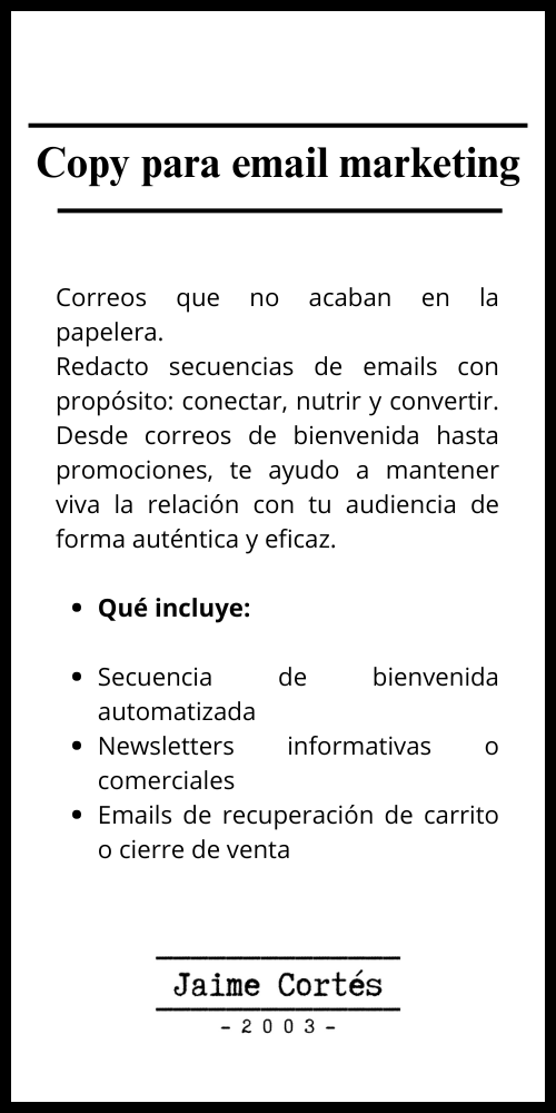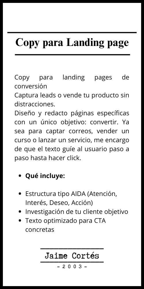 Descubre mis servicios de redacción de web estratégica, copy para landing page y copy para email marketing, los cuales pueden ayudarte a alcanzar tus objetivos:
